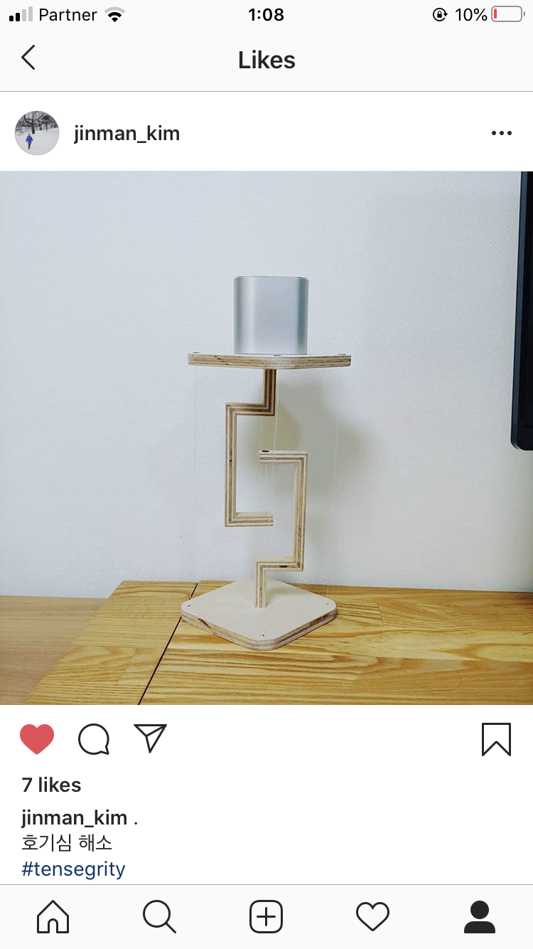 A tensegrity construction made during the 2020 COVID-19 quarantine period. The photo is a screenshot from instagram. The account is the first words of the filename, up to the hyphen, "-2020TensegrityChallenge". Example: my.account-2020TensegrityChallenge.PNG "my.account" is the name of the Instagram user's account where the photo was found.