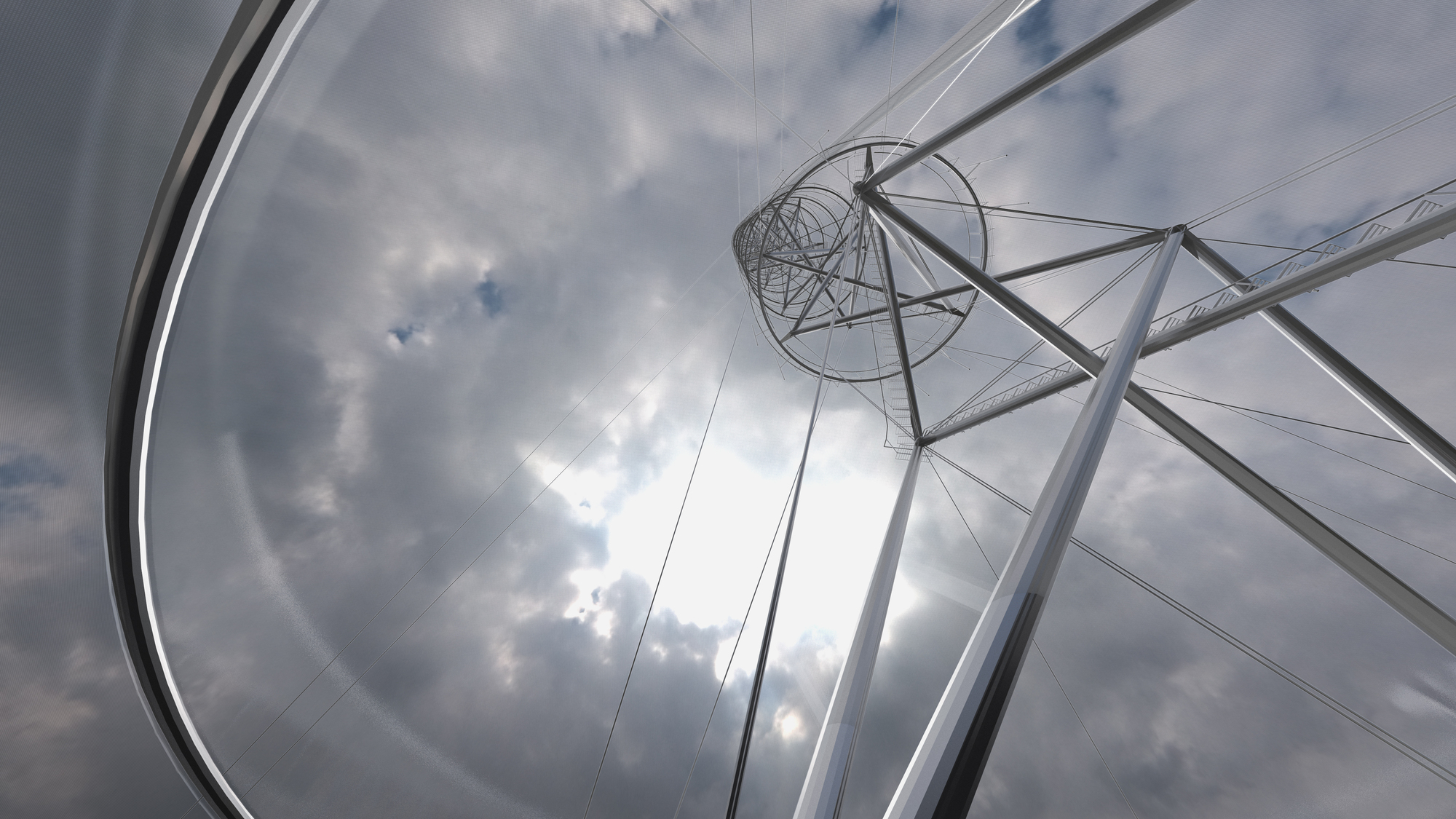 Santiago Radio Tower by Smiljan Radic. Looking upwards from base to the sky.