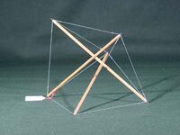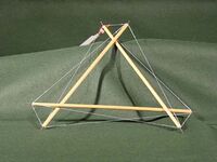 A 3-strut tensegrity by Fuller, forming a triangle. May have been used to illustrate that even a "polygon" triangle is an ultra-flat tetrahedron.