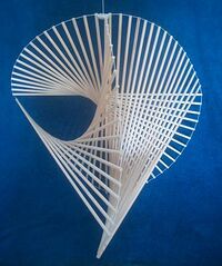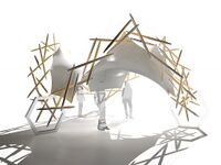 In an alternate construction method, each structurally essential strut is repeatedly implemented. The new strut is redundant, structurally. Visually, the redundant struts articulate various forms as they apread out and away from one another. Pars experiments with this implementation; below two photos from his website.