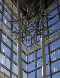 Below, the Sixty Strut Tensegrity by Fuller, composed of a repeated three-strut module.