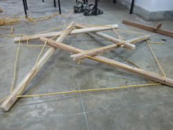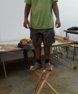 Sushant Passi, Bangalore, India, posted online a tensegrity stool he designed and developed for the Mathematics of Planet Earth Exhibition in Bangalore to interactively express the concept of Tension and its capabilities in forms, November 2013.