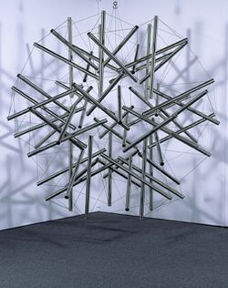 strut sculpture by R. B. Fuller, Sixty Strut Tensegrity Sphere.
