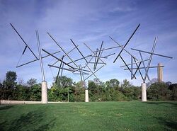 Triple Crown, one of three Kenneth Snelson tensegrity sculptures on public display, named after a horse.