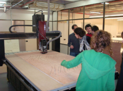 Cutting the wooden struts used in the Barcelona Tower mast. By Biodigital Architecture.
