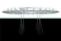 A series of vertical struts were suspended by tendons from the platform. Each strut was