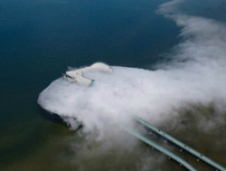 The building was clad in steam, avoiding the need to attached cladding to the tensile web.
