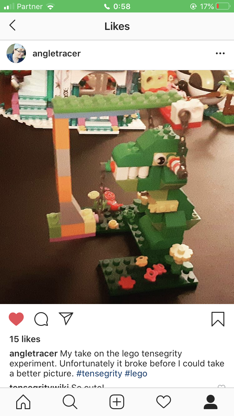 A tensegrity construction made during the 2020 COVID-19 quarantine period. The photo is a screenshot from instagram. The account is the first words of the filename, up to the hyphen, "-2020TensegrityChallenge". Example: my.account-2020TensegrityChallenge.PNG "my.account" is the name of the Instagram user's account where the photo was found.