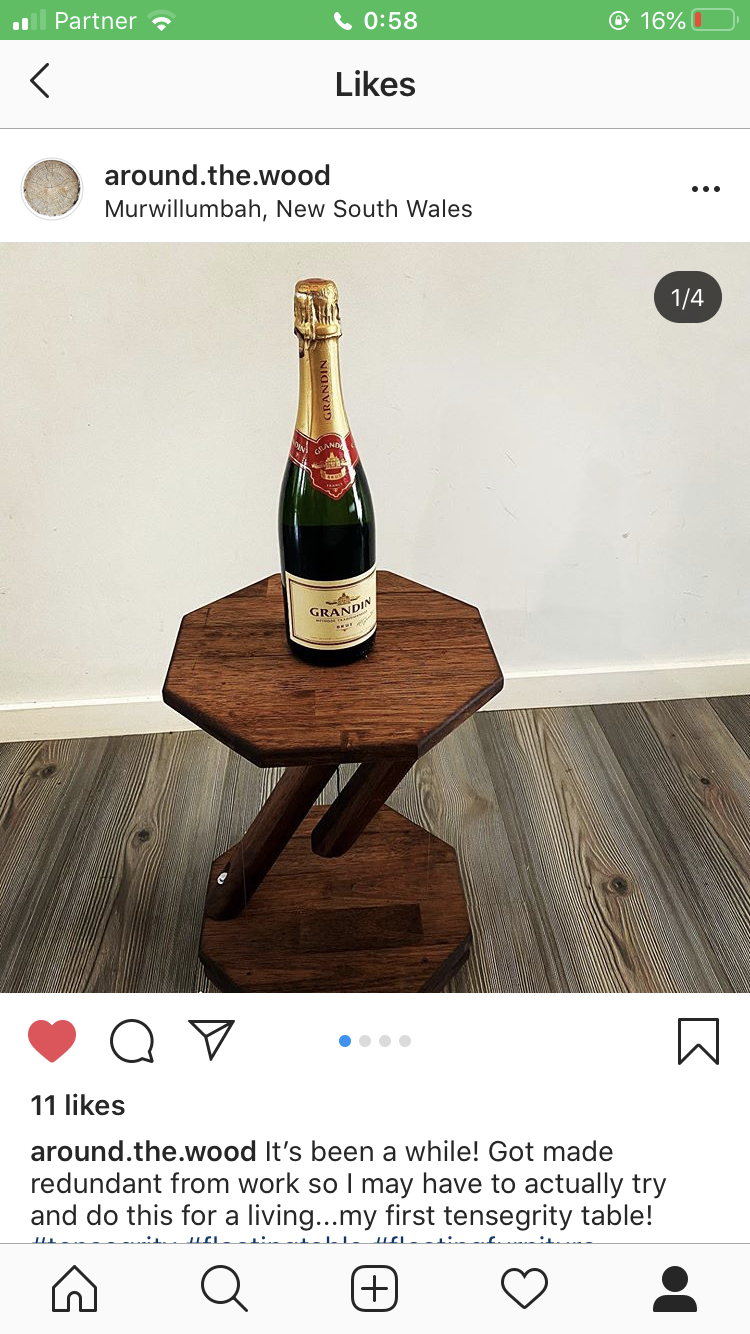 A tensegrity construction made during the 2020 COVID-19 quarantine period. The photo is a screenshot from instagram. The account is the first words of the filename, up to the hyphen, "-2020TensegrityChallenge". Example: my.account-2020TensegrityChallenge.PNG "my.account" is the name of the Instagram user's account where the photo was found.