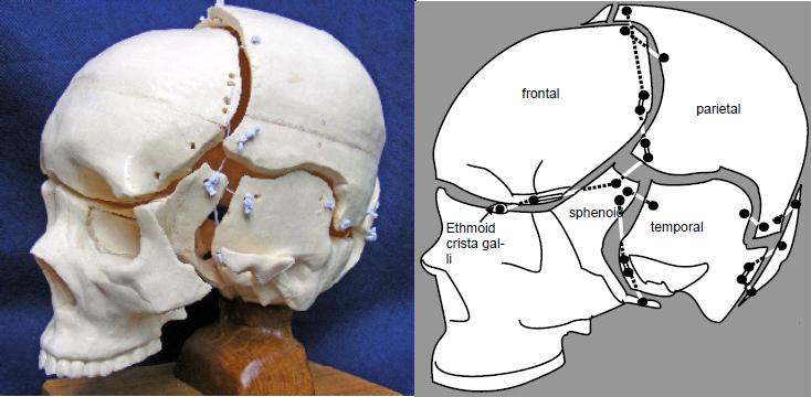 Cranial vault tensegrity model, antero-lateral view by Scarr