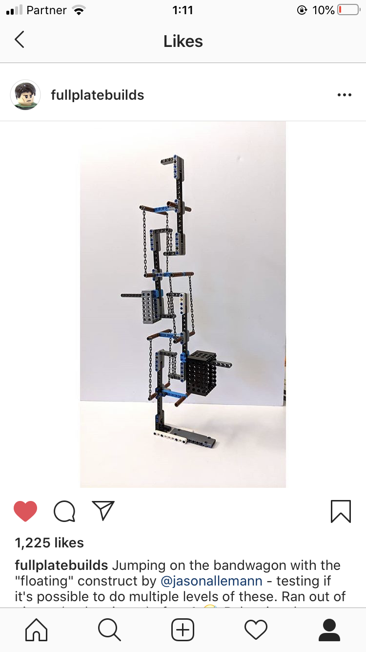 A tensegrity construction made during the 2020 COVID-19 quarantine period. The photo is a screenshot from instagram. The account is the first words of the filename, up to the hyphen, "-2020TensegrityChallenge". Example: my.account-2020TensegrityChallenge.PNG "my.account" is the name of the Instagram user's account where the photo was found.