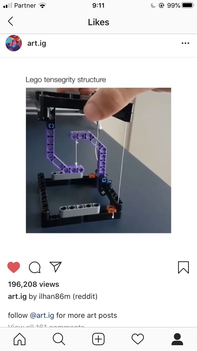 A tensegrity construction made during the 2020 COVID-19 quarantine period. The photo is a screenshot from instagram. The account is the first words of the filename, up to the hyphen, "-2020TensegrityChallenge". Example: my.account-2020TensegrityChallenge.PNG "my.account" is the name of the Instagram user's account where the photo was found.