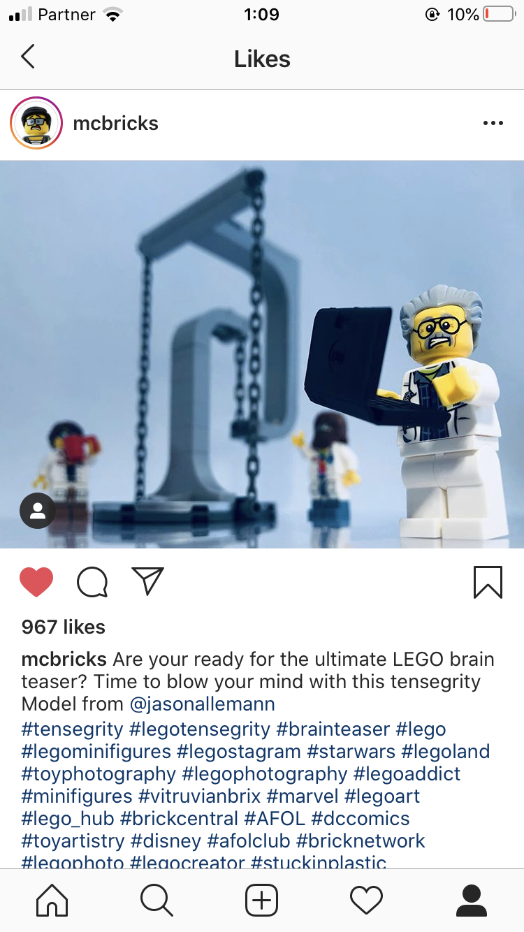 A tensegrity construction made during the 2020 COVID-19 quarantine period. The photo is a screenshot from instagram. The account is the first words of the filename, up to the hyphen, "-2020TensegrityChallenge". Example: my.account-2020TensegrityChallenge.PNG "my.account" is the name of the Instagram user's account where the photo was found.