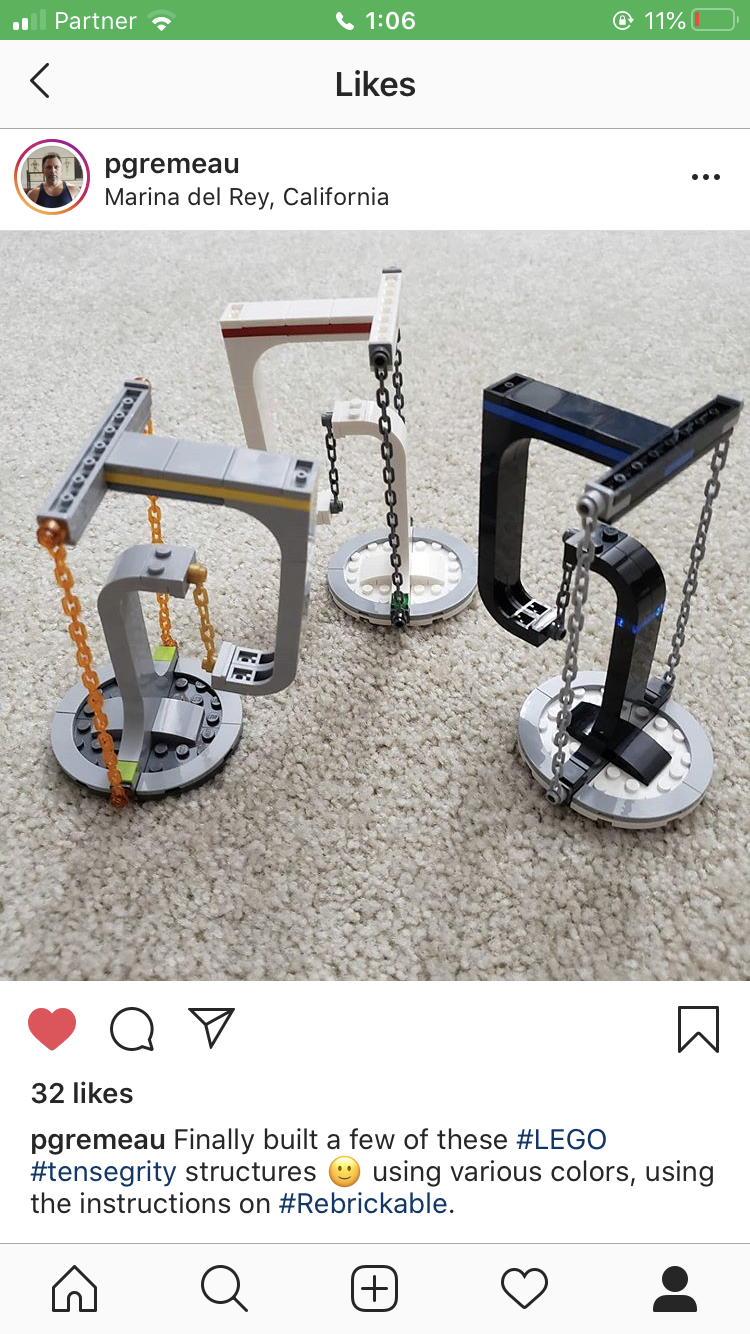 A tensegrity construction made during the 2020 COVID-19 quarantine period. The photo is a screenshot from instagram. The account is the first words of the filename, up to the hyphen, "-2020TensegrityChallenge". Example: my.account-2020TensegrityChallenge.PNG "my.account" is the name of the Instagram user's account where the photo was found.