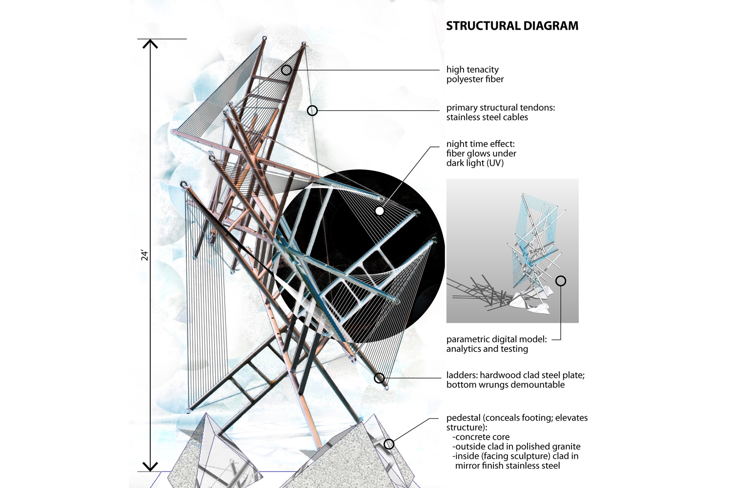 Push-pull sculpture, structural diagram. By Raffi Tomassian. http://www.raffiworks.com/2016/02/09/push-pull-sculpture/