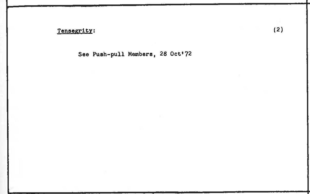 Tensegrity card No. 18020 from the Synergetics Dictionary, (c) 1986, 2008, The Estate of R. Buckminster Fuller & The Estate of E.J. Applewhite. All Rights Reserved. Copy or download of this copyrighted work is permitted for personal non-commercial use only. Link to this card: http://www.rwgrayprojects.com/SynergeticsDictionary/SDCards.php?cn=18020&tp=1. The entire dictionary is accessible online at http://www.rwgrayprojects.com/SynergeticsDictionary/SD.html.