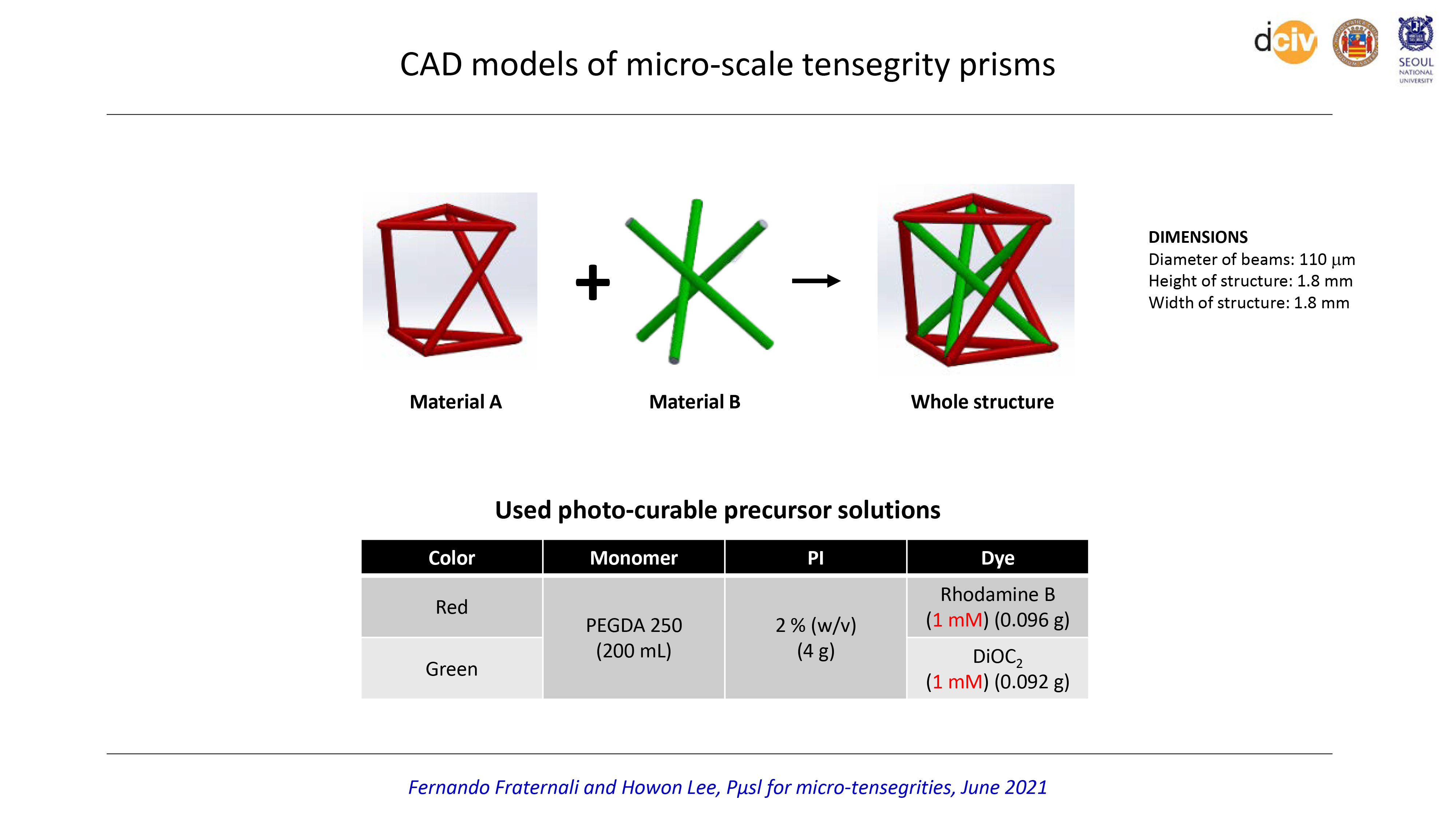 Fernando Fraternali and Howon Lee, Pμsl for micro-tensegrities, June 2021 CAD models of micro-scale tensegrity prisms