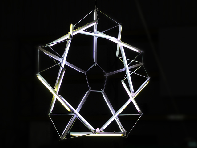 20 strut tensegrity formed from fluorescent tubes and wire. By James Clar. http://www.jamesclar.com