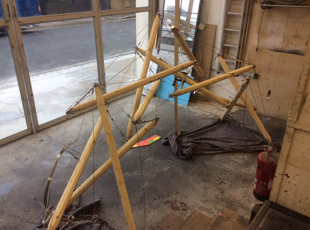 Tension, a tensegrity pavilion, test build at Weber Industries. Photo: StructureMode