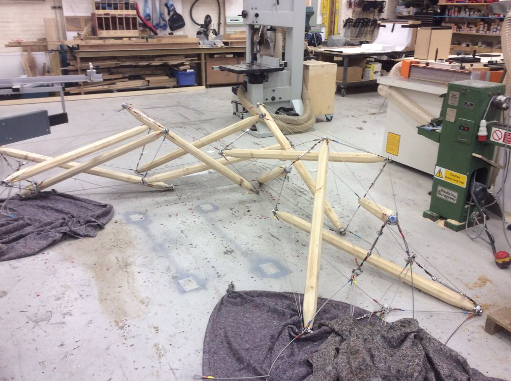 Tension, a tensegrity pavilion, test build at Weber Industries. Photo: StructureMode