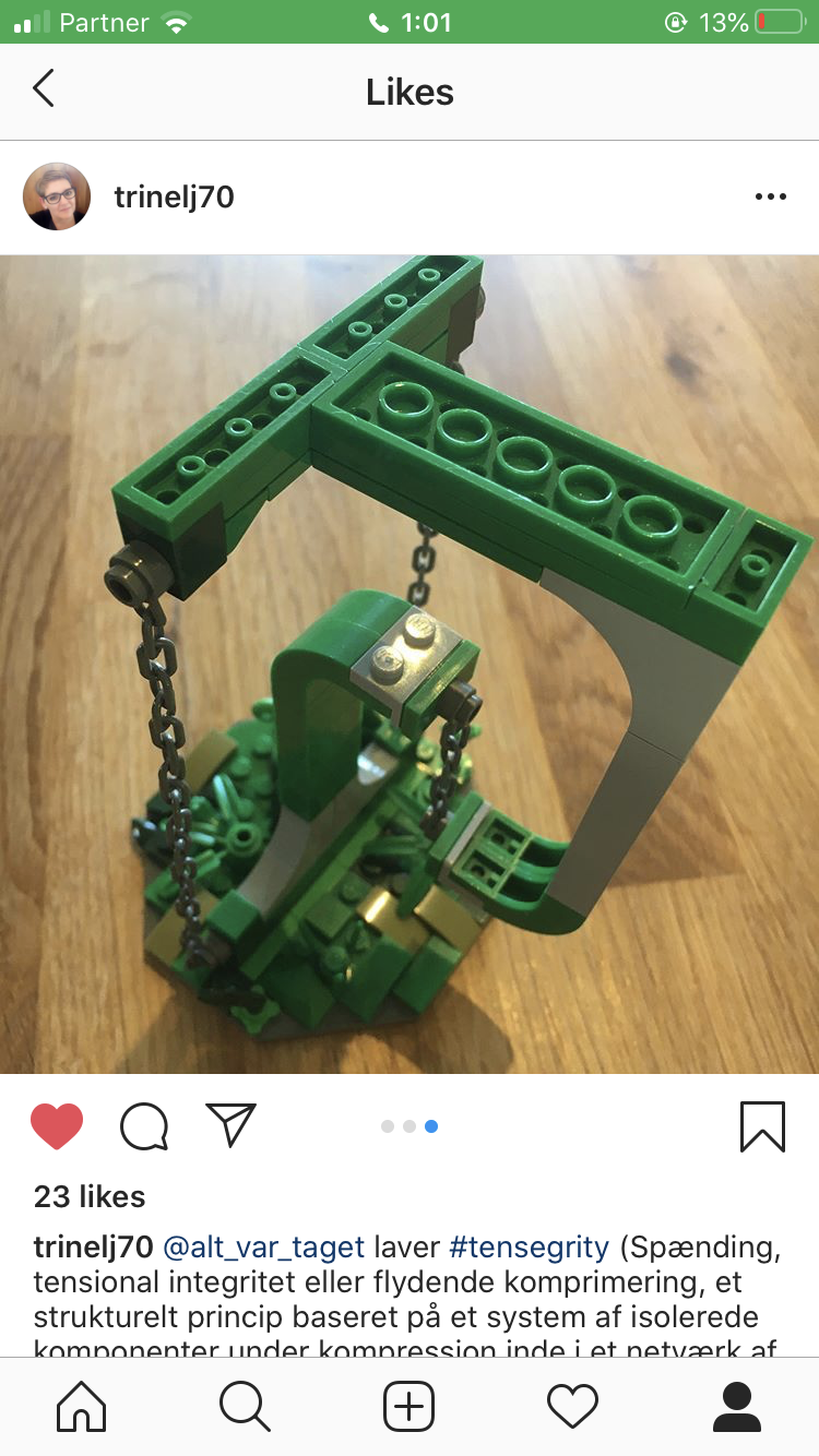 A tensegrity construction made during the 2020 COVID-19 quarantine period. The photo is a screenshot from instagram. The account is the first words of the filename, up to the hyphen, "-2020TensegrityChallenge". Example: my.account-2020TensegrityChallenge.PNG "my.account" is the name of the Instagram user's account where the photo was found.