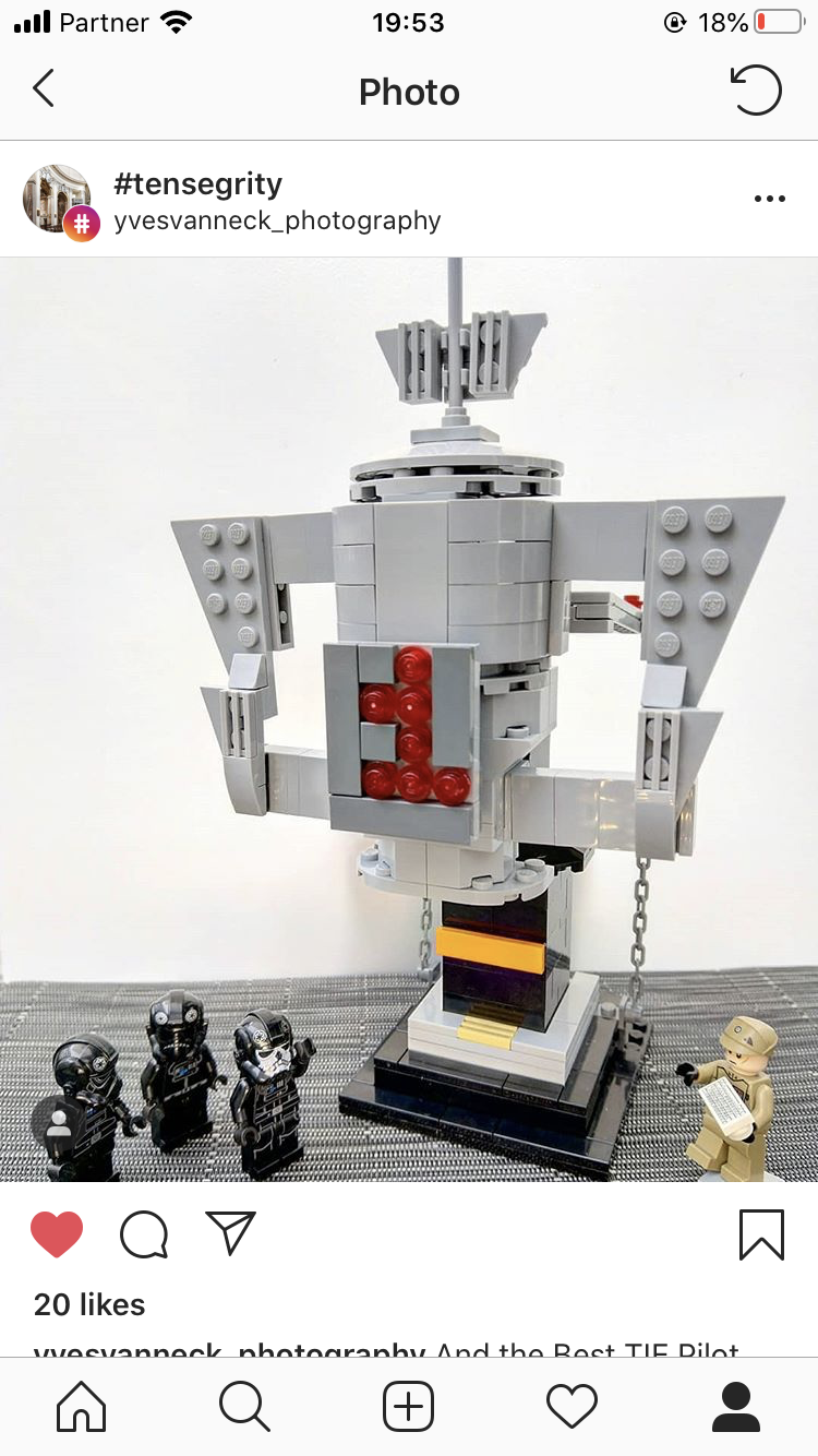 A tensegrity construction made during the 2020 COVID-19 quarantine period. The photo is a screenshot from instagram. The account is the first words of the filename, up to the hyphen, "-2020TensegrityChallenge". Example: my.account-2020TensegrityChallenge.PNG "my.account" is the name of the Instagram user's account where the photo was found.