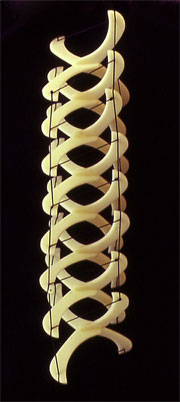 26 tetrahedral nucleated stuts in a column, forming a vertebrate-like structure, by Tom Flemons