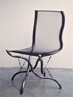 Chair supported by a three strut tensegrity, the struts are wavilinear. By Tom Flemons"