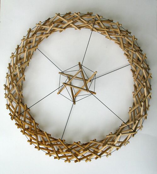 Ezekiel's Wheel, tensegrity elaboration of bicycle wheel, by Tom Flemons"
