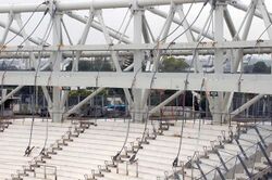 La Plata Birdair cable and fabric roof stadium central hum scaffold.