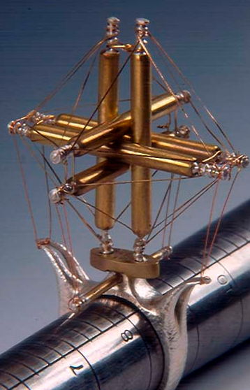 The artist wrote: Elastegrity is an adaptation of the Kenneth Snelson/Buckminster Fuller term “Tensegrity” (meaning a structure consisting of two basic units; tension cables, and compression struts, which operate using “tensional integrity.”) In this case the tension cables (which draw inward in tension) are replaced with elastic wires (which push outward) and the resulting structure maintains its integrity through the compression of struts by the elastic properties of the wire or other spring members. The term “elastegrity” was coined by me to describe these structures which I developed in the Fall of 2009.