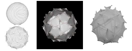 Below, an example of the same 6 strut tensegrity structure antiprism formed with membranes and tendons: