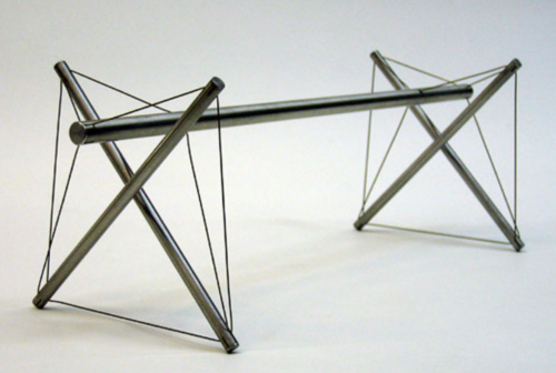 The double cross bar by Snelson features a long strut anchored in two parallel constructions.