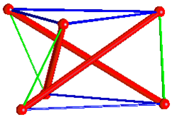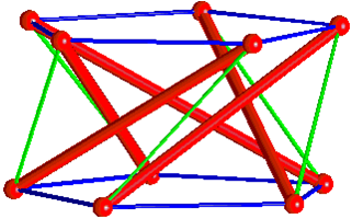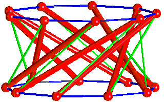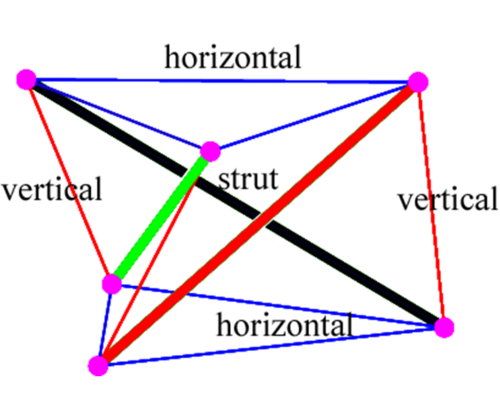 The simplest prismatic tensegrity structure, labelled and rendered by by Zhang, Guest, Ohsaki