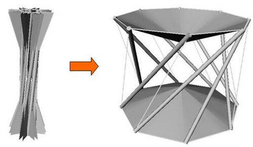 8 strut prism forming a self-deploying satellite antenna, from a powerpoint by Carl D. Crane III