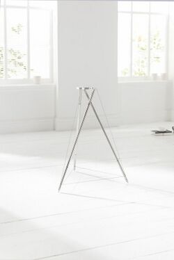 3 strut tensegrity as a speaker stand. A round supporting plate mounts the speaker, visible in the foreground. See https://www.qacoustics.co.uk