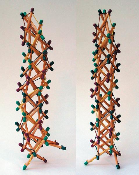 6 nucleated tetrahedral struts in a vertebra-like column, by Flemons" link http://www.intensiondesigns.ca/"