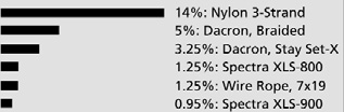 - Nylon stretches far more than Dacron.