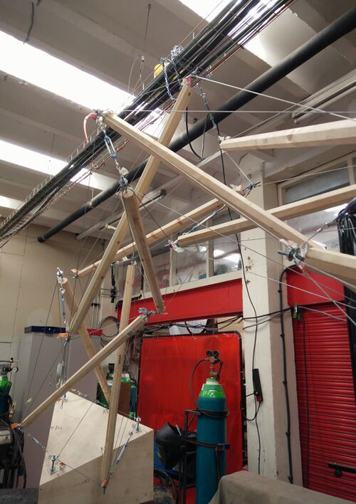 Tension, a tensegrity pavilion, test build at Weber Industries. Photo: StructureMode.