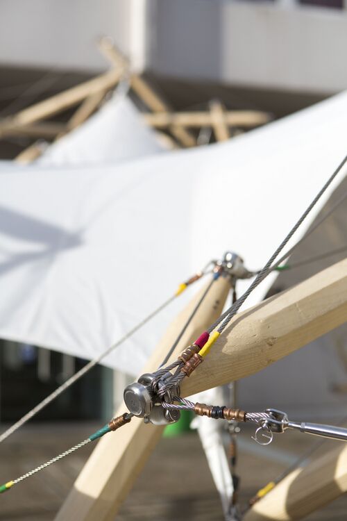 Tension, a tensegrity pavilion, as seen at the Vision London 2016 Exposition - detail. Photo: Agnese Sanvito.