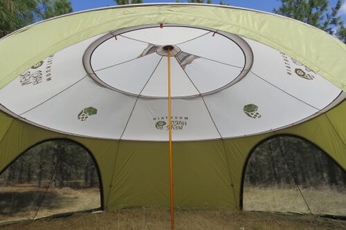 Ring Pole™ tents are open, in that they depend on a central pole, affixed to the ground, elevating via compression the center of the tent. Ring Pole™ tents which use a Trussring™ support system consisting of a shelf (the truss) and a hoop (the ring).
